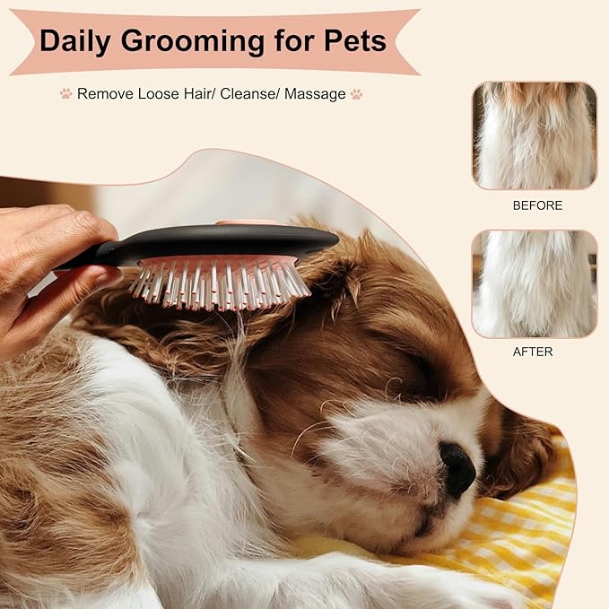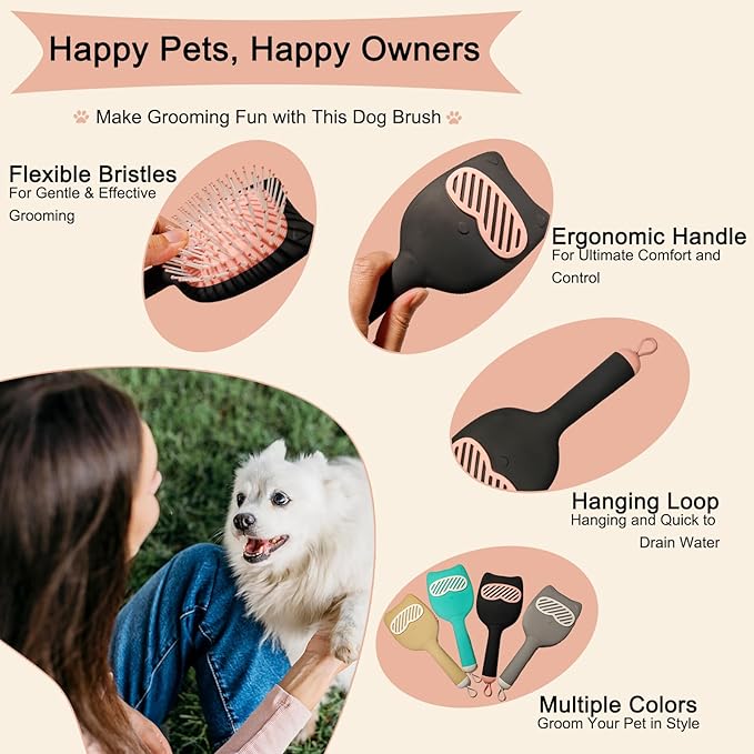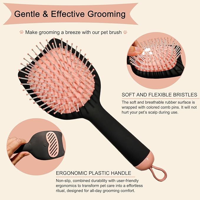 - Skin-Safe Flexible Bristles adapt to body contours with optimal pressure control reducing pulling on sensitive areas like ears bellies and tails while the unique cat-ear handle design offers stability for thorough brushing even on anxious puppies or senior dogs