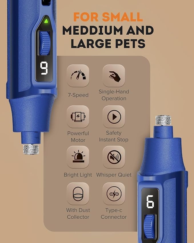 - INCLUDES DUST COLLECTOR: No more mess! The dog nail grinder features a built-in dust collector to keep nail filings contained, providing a tidy grooming session for both you and your pet.