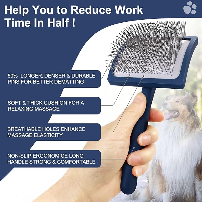 - ★【GENTLE ON SENSITIVE SKIN】: Featuring an airflowable pad, this long pin dog slicker brush is suitable for pets with sensitive skin, including small dogs and long-haired cats. It protects against scratches, reduces hair breakage, and provides a comfortable grooming experience while promoting healthy skin and blood circulation. Perfect as a puppy brush for small dogs or a cat slicker brush for long-haired cats. Notably, this cat brushes are ideal for indoor cats, providing gentle and effective grooming.