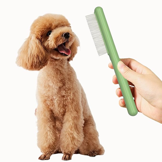 Small Dog Grooming Brush,Puppy Hair Brush for Shedding Tangles Pet Hair Removal Comb Stainless Steel Teeth Flea Comb - Perfect for Shih Tzus,Yorkies,Maltipoos,Maltese,Small Breeds (Wide teeth)