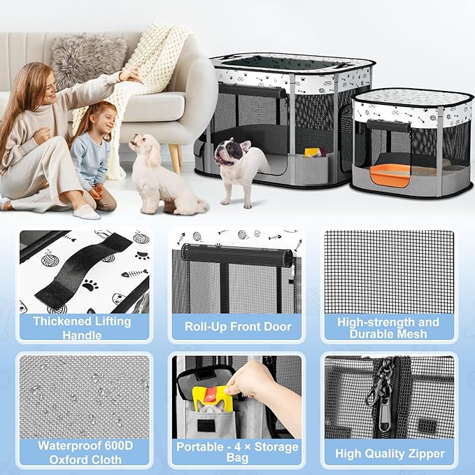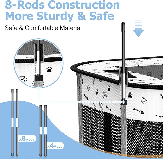 - Sturdy & Cozy Materials : Portable cat playpen upgrade with an 8-Rods structure for greater structural stability. Kitten playpen indoor is composed of thick mesh and scratch-resistant 600D Oxford cloth, which is breathable, easy to clean and waterproof
