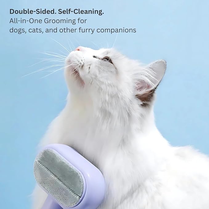 Self-Cleaning Pet Brush for Dogs & Cats – Double-Sided Deshedding Comb & Fur Remover Tool, Gentle Grooming for Long & Short Haired Pets, Effectively Removes Loose Fur (Lilac)