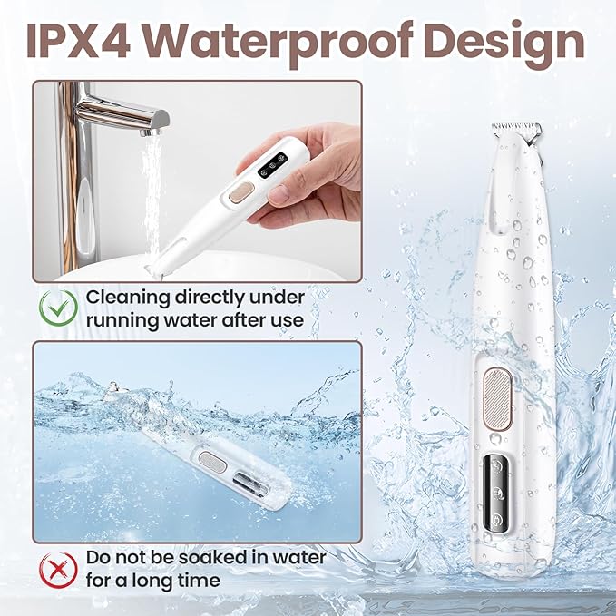 - 【IPX4 Waterproof & Easy to Clean】The waterproof pet micro precision shaver is made of premium waterproof material, which can be rinsed directly under the water stream to maintain hygiene quickly. Keep the multifunctional dog paw trimmer clean and hygienic to prolong the product life! Tip: Do not soak the pet trimmer in water for a long time