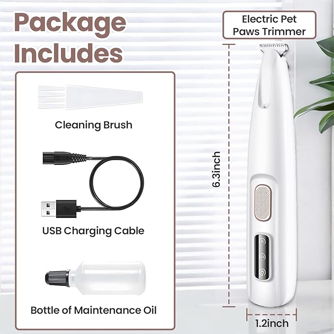 - 【18mm Wider Blade Safe & Cut-Proof Design】Designed for sensitive areas of your pet, our pet micro precision trimmer features 18mm stainless steel blades for safe and efficient trimming of hair around paws, ears, eyes and hips. The cut-proof design causes no harm to your pet's skin or sensitive areas, allowing your pet to enjoy a worry-free trimming experience