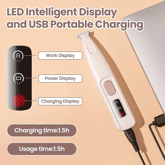 - 【Rechargeable and Smart LED Display】This rechargeable dog paw trimmer has USB-C fast charging function, one full charge can have more than 90 minutes of cordless use. Support cell phone adapter, mobile power, computer and other charging methods. And our dog claw shaver comes with HD smart LED display, which can show the running status, charging reminder and charging status in real time, so that you can always know the power status of the rechargeable pet paw shaver