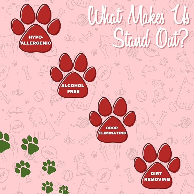 - PET WIPES: Our wipes come in various gentle scents and are hypo-allergenic, alcohol free, and deodorizing.
