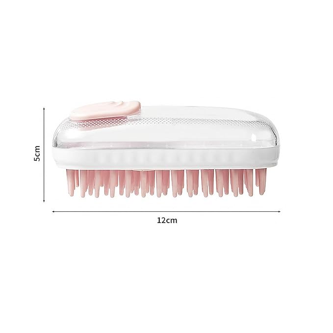 Pet Grooming Brush with Silicone Bristles, Massage Scrubber for Dogs & Cats, White and Pink (Pink)