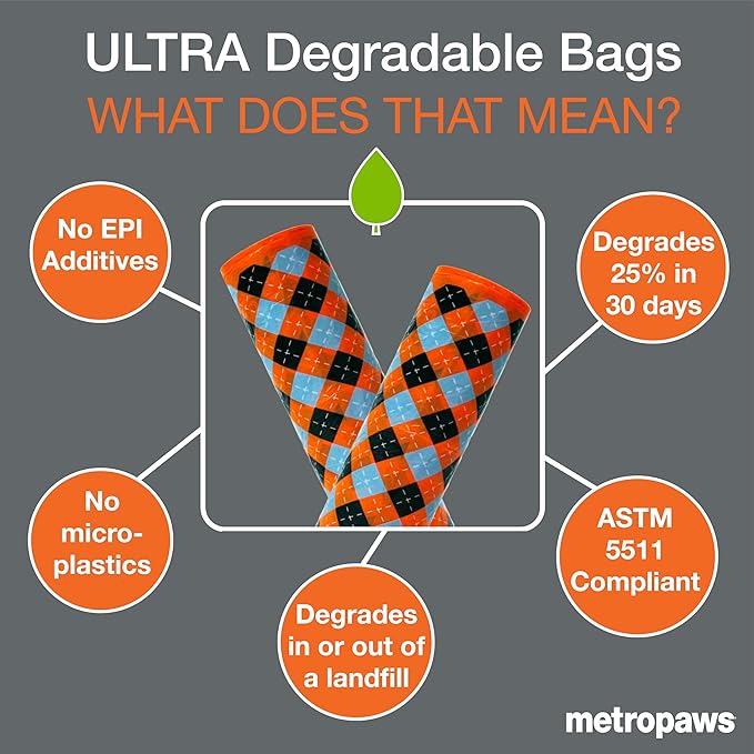 - [Durable Poop Bags]: Made from a sturdy polyblend (ASTM 6954), these poop bags help reduce environmental impact, ideal for eco-conscious pet owners