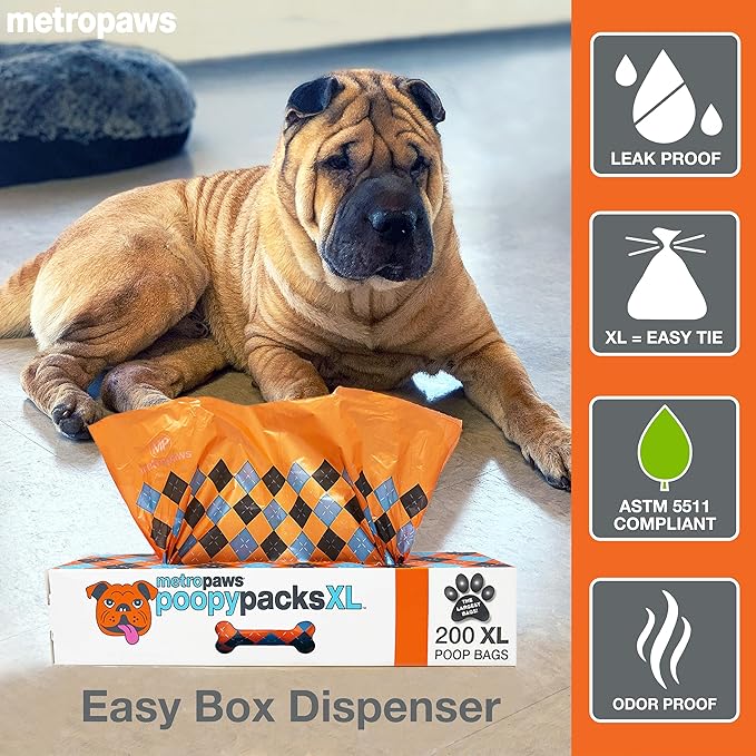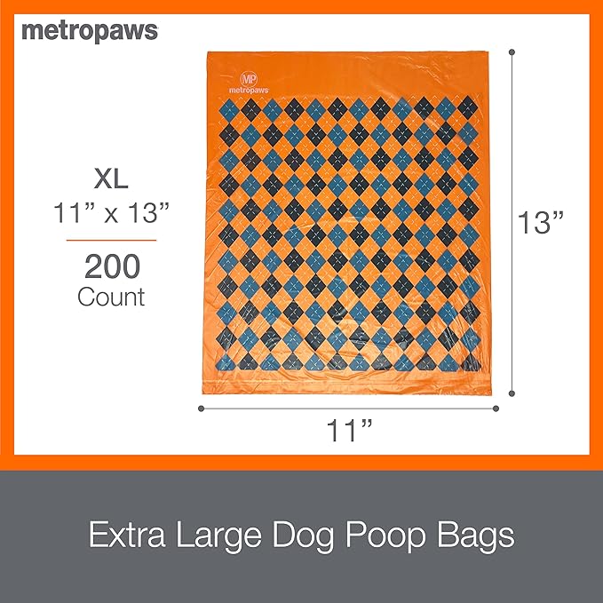 - [200 Extra Large Dog Waste Bags]: Metro Paws Poopy Packs XL are some of the largest on the market, measuring 11"x13" per bag, perfect for handling even the biggest messes with these dog poop bags, large size is ideal for multiple dog households