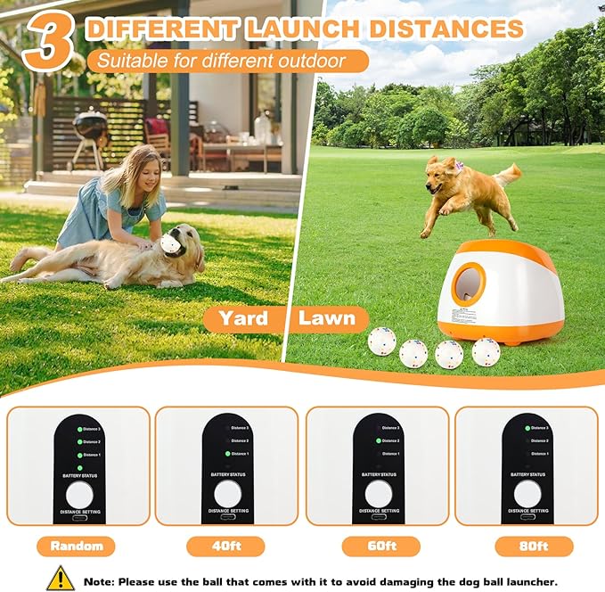 - 🐶 3 Adjustable Launch Distances: This dog ball launcher offers three different launch distances – 40 feet, 60 feet, and 80 feet. You can easily select your desired distance to accommodate different play areas and your dog's energy level. Whether it's a small backyard or a large park, this tennis ball launcher for dogs will keep your dog active and happy.