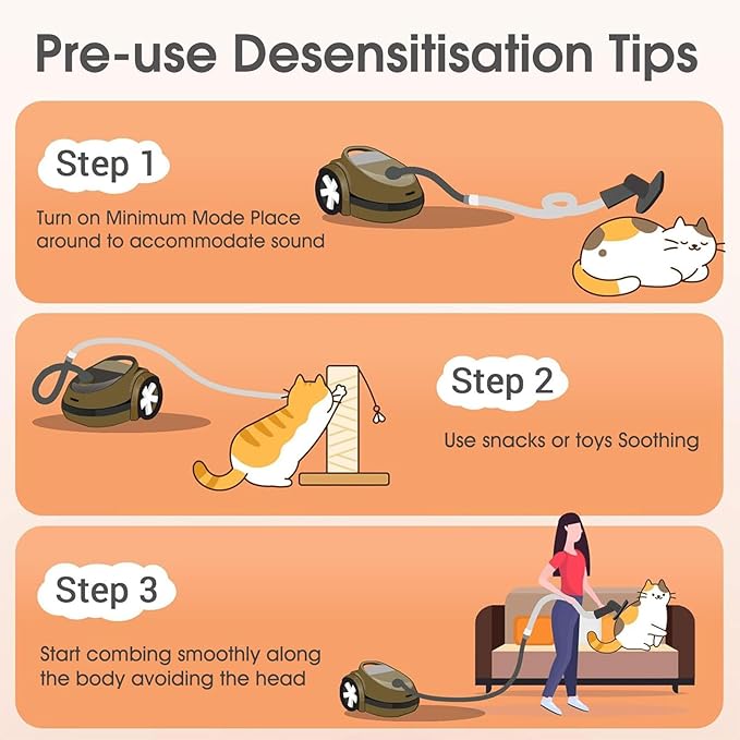- Improved Extension Hose & Quieter Operation: Our upgraded extension hose measures an impressive 4.9Ft(58.8in), allowing you to keep the vacuum cleaner at a greater distance from your loved pet. This ensures that their grooming session remains tranquil and stress-free.If hose cuff is loose or off, use your left-hand middle finger to slide into the lose cuff to hold the middle ring, use your right hand to screw the hose counter clock wise direction to screw in.