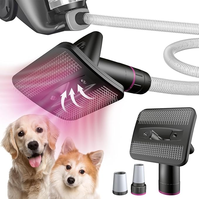 - Innovative Pet Grooming Kit & Optimize Home Environment: dog vacuum brush to shed pet hair in any season, especially with excellent performance on dogs and cats, it can connect the pet grooming attachments to your vacuum cleaner, saving time and money. No need to worry about hair spreading all over the house again. (Vacuum not included)
