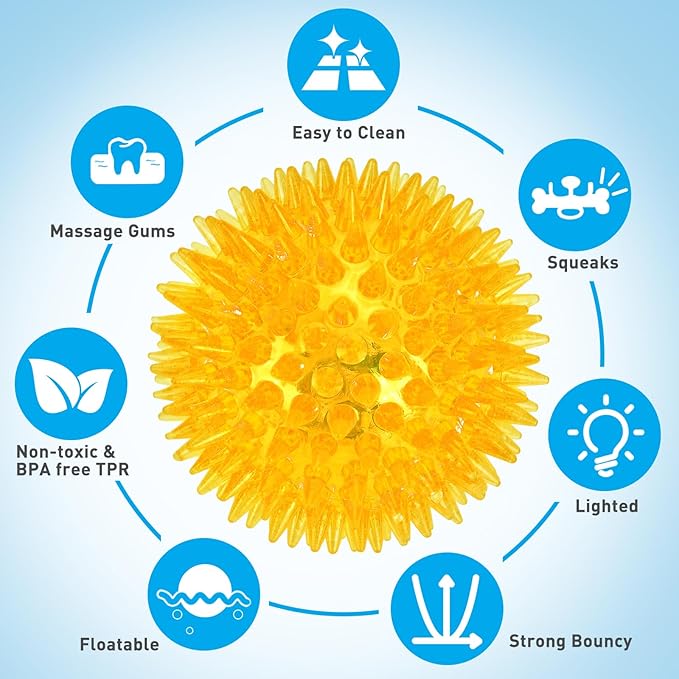 6-Pack 2.5” LED Light-Up Squeaky Dog Toy Balls ,Durable Interactive Glow Fetch Toys for Aggressive Chewers,BPA Free Non-Toxic, Spiky Puppy Chew Balls