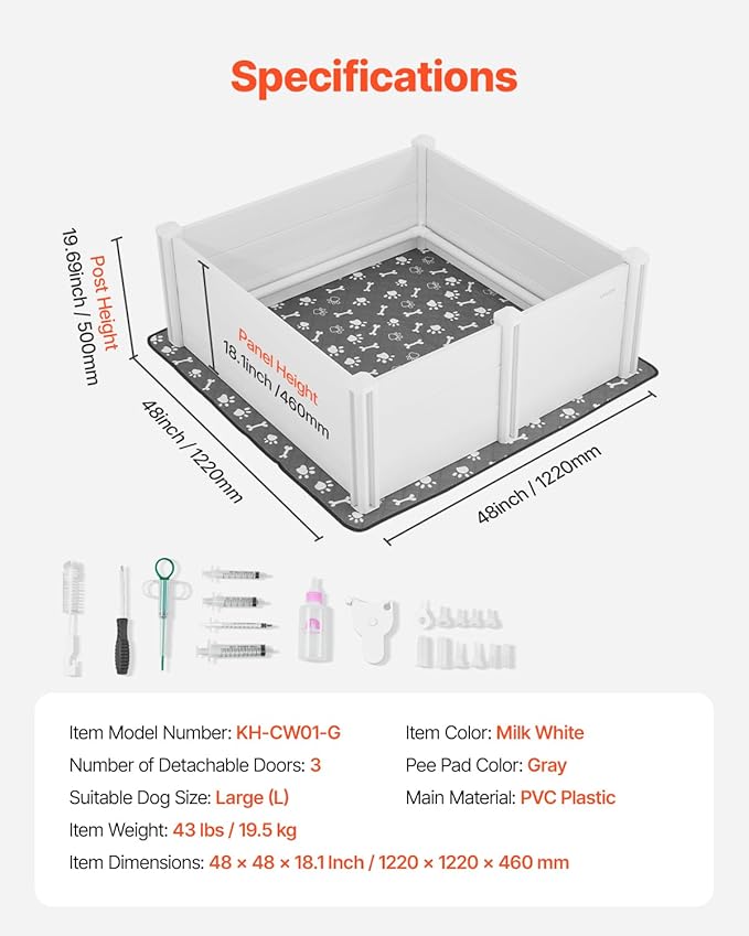 VEVOR Dogs Whelping Box, 48 x 48 x 18.1 inch, Plastic PVC Puppies Playpen with Height Adjustable Door and Washable Pee Pad, Anti-Deformation Indoor Puppy Play Pen for Large Breed Dogs, Milk White