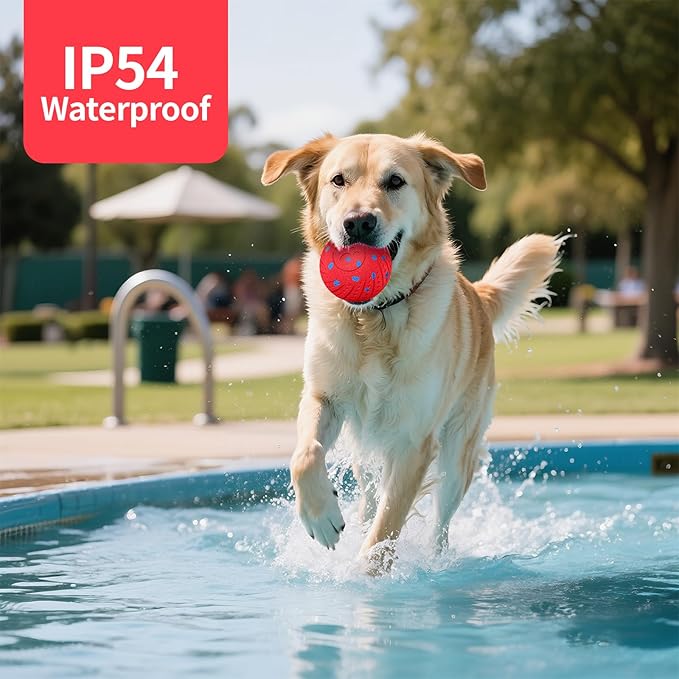 - 【IP54 Waterproof - Indoors or Outdoors, Play Anytime】Whether it’s in the living room or outdoors grass, this water-resistant dog ball is ready to work. It keeps your puppy entertained for hours, which is great for burning energy and having a lot of fun, even on rainy days!