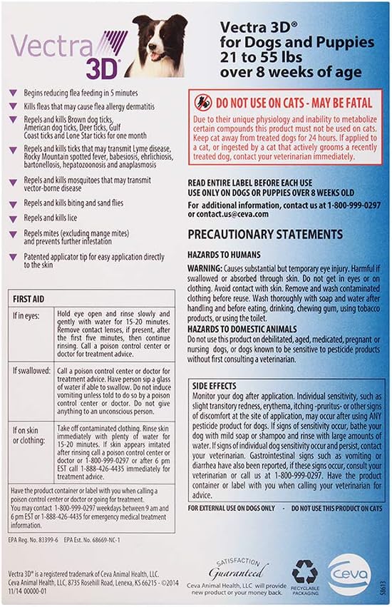 Vectra 3D for Dogs Flea, Tick & Mosquito Treatment & Prevention for Medium Dogs (21 – 55 lbs), 6 Month Supply (Pack of 12)