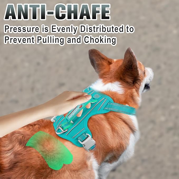 BARKBAY No Pull Dog Harness Large Reflective Dog Harness with Front Clip and Easy Control Handle for Walking Training Running with ID tag Pocket(Ocean Blue,XS)