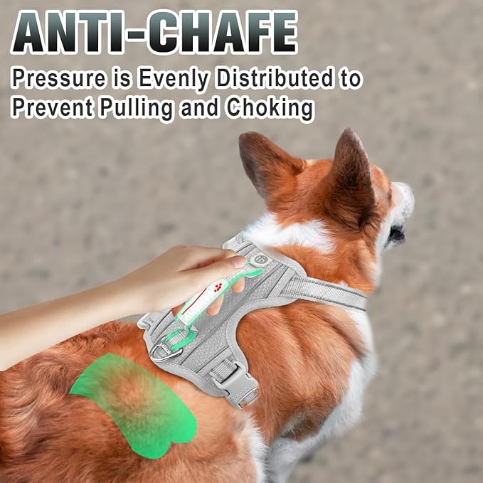 BARKBAY No Pull Dog Harness Large Reflective Dog Harness with Front Clip and Easy Control Handle for Walking Training Running with ID tag Pocket(Grey,XS)