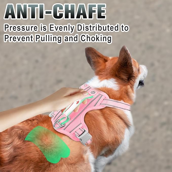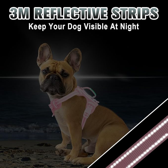 BARKBAY No Pull Dog Harness Large Reflective Dog Harness with Front Clip and Easy Control Handle for Walking Training Running with ID tag Pocket(Baby Pink,XS)