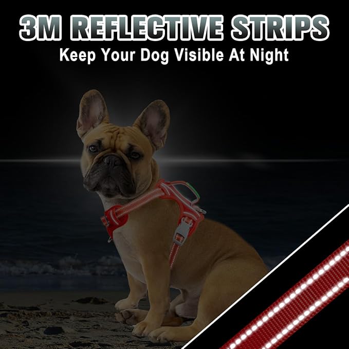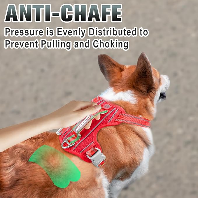 BARKBAY No Pull Dog Harness Large Reflective Dog Harness with Front Clip and Easy Control Handle for Walking Training Running with ID tag Pocket(Red,XS)