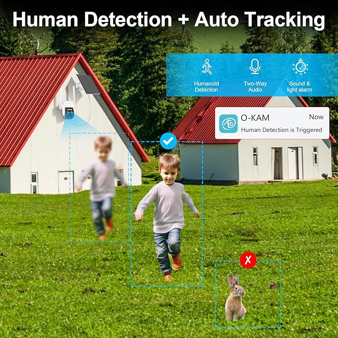 - 【PIR & AI Motion Detection】--- Receive accurate alerts for real threats. Advanced PIR sensors detect body heat, while AI distinguishes between people, pets, and vehicles. This reduces false alarms from leaves or shadows, so you're only notified when it matters most for your security.